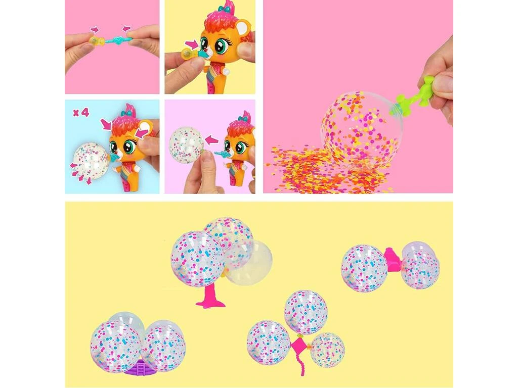 ¡Hay 13 modelos diferentes para coleccionar! ¡Hazte con todas las divertidas figuras y llena de globos con confeti tus horas de juego!