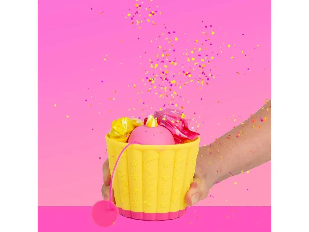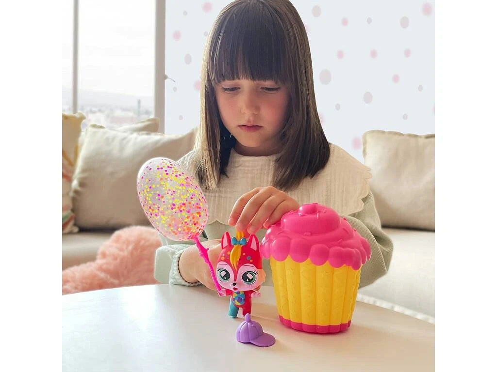 Consigue este alucinante cupcake lleno de sorpresas y color, prepárate para la fiesta más divertida junto a un nuevo amiguito lleno de sorpresas. Abre el pack, infla los globos, llénalos de confeti y mucho más.