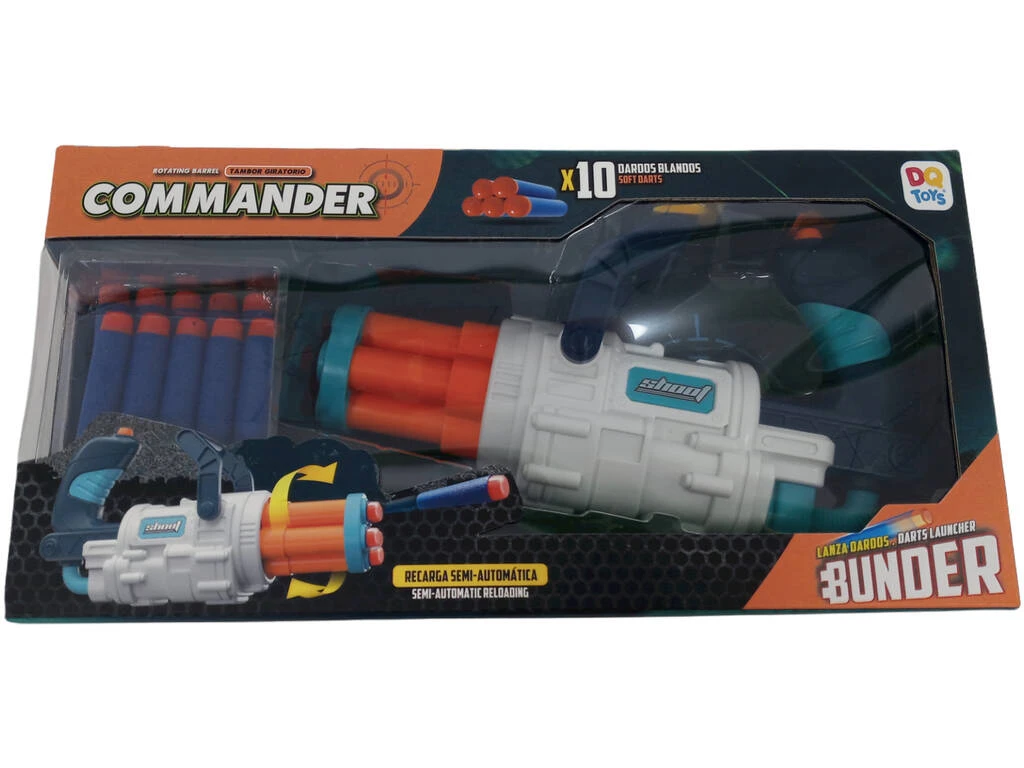 Sorprende a todos tus amigos con un lanzador fascinante lleno de posibilidades, junto al que se incluyen 10 dardos de foam con los que pasar a la acción y poner a prueba tu puntería. Con sistema de recarga semi-automática, el Commander es el lanzador definitivo para tus ratos más divertidos al aire libre. ¡Carga los dardos en el tambor, tira hacia atrás del cargador, apunta y lanza tus dardos de foam!