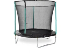Incluye: 1 cama elástica con base estable, detalles azul turquesa y red resistente de seguridad en los laterales con cierre de seguridad.
