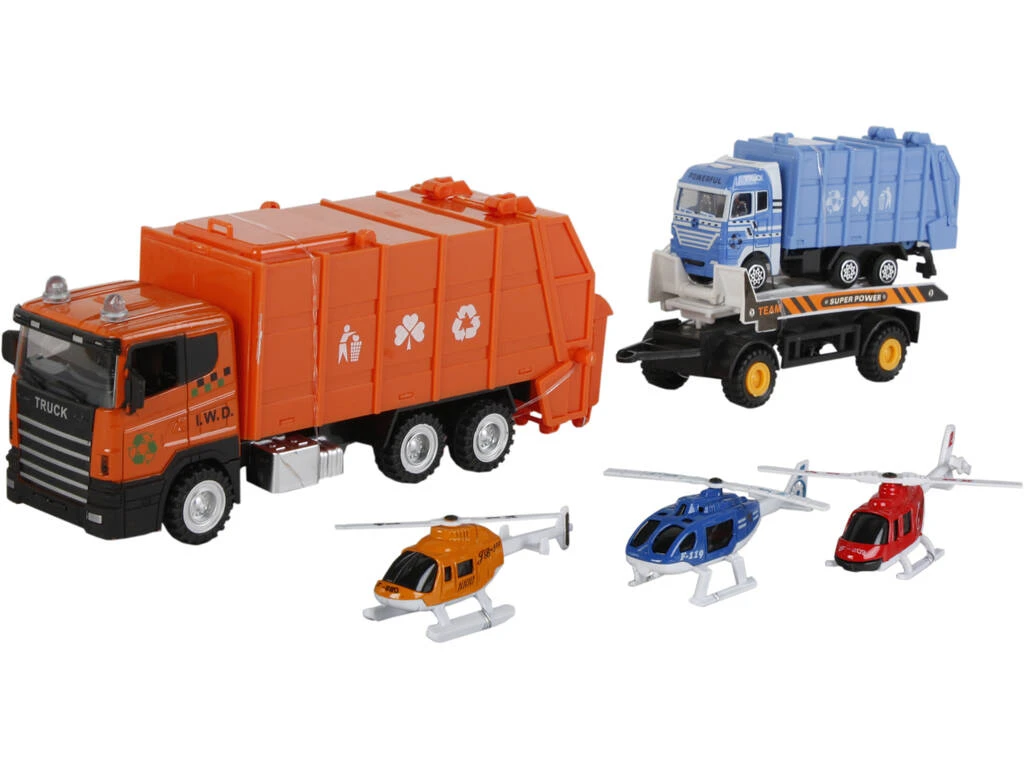 Preparate para la aventura con el conjunto de vehículos, tienes que llevar todos los residuos tóxicos a la planta de reciclaje. Los helicópteros controlan que todo vaya correcto. Utiliza en camión en los lugares mas difíciles de entrar.