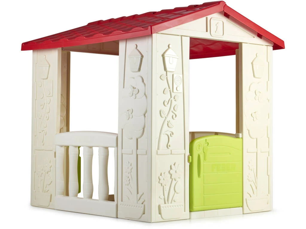 Llévate esta nueva y estilosa casa, fabricada en materiales de gran calidad y durabilidad, con un diseño muy especial, ya que en sus paredes se pueden apreciar diseños sobre el plástico que muestran el número de la casa, plantas, farolillos y más sorpresas. La casa tiene un diseño muy llamativo, con varios espacios de juego como sus ventanales, puertas y el alto tejado, que permite una gran variedad de juegos en su interior. ¡Encuentra el lugar ideal para su instalación y disfruta de un juego seguro, imaginativo y creativo para los más peques!