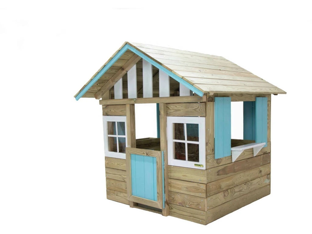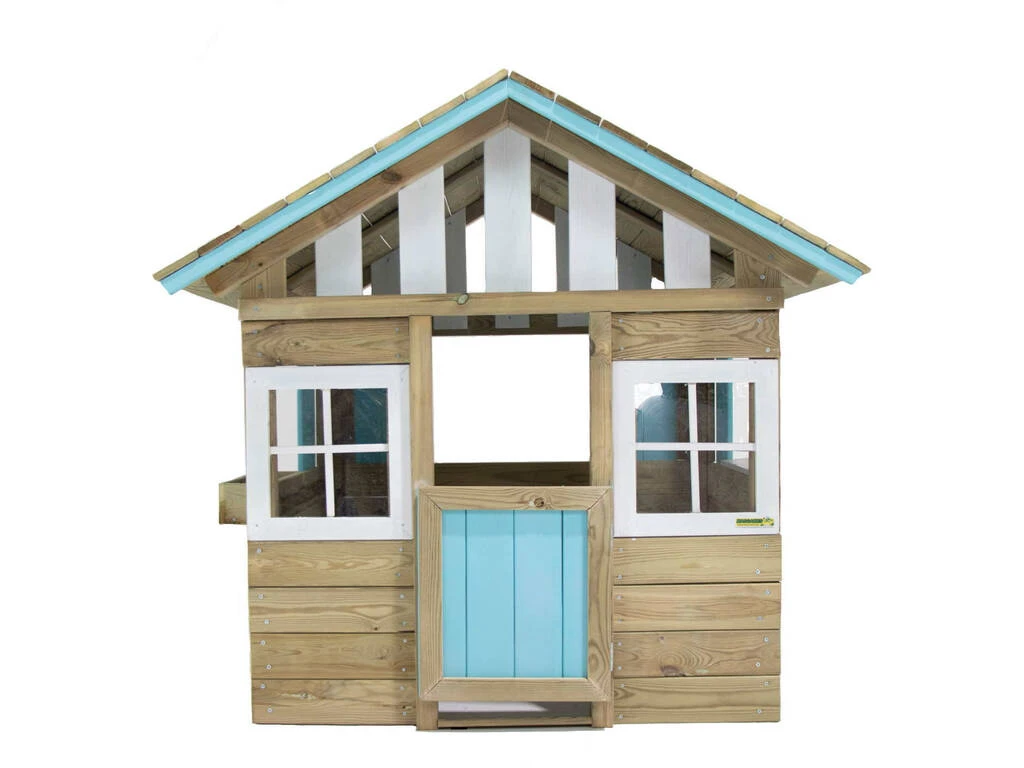 Incluye: 1 casita infantil Lollipop de color azul con puerta con cierre en imán, ventanas de polietileno abiertas, estante, jardinera y tejado a dos aguas.