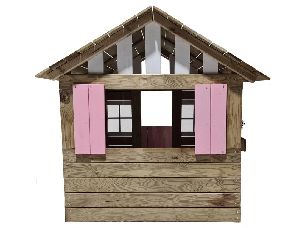 Incluye: 1 casita infantil Lollipop de color rosa con puerta con cierre en imán, ventanas de polietileno abiertas, estante, jardinera y tejado a dos aguas.