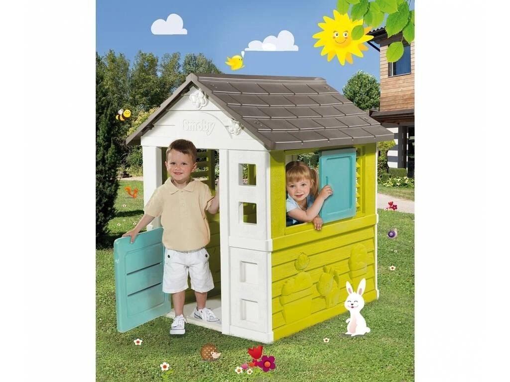 Incluye: 1 casita infantil Pretty House con piezas de color blanco, verde, azul y gris, dos ventanas correderas, una ventana abierta en la parte posterior, una portezuela en la fachada delantera y con tratamiento Anti-UV para conservar sus cualidades.
