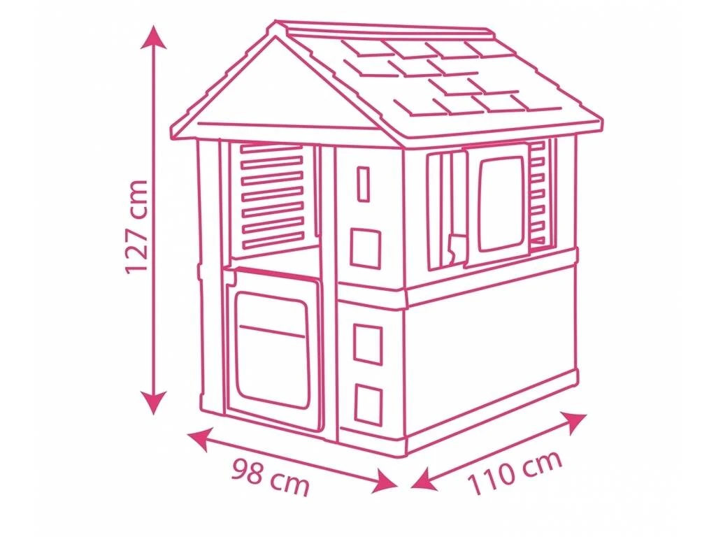 Medidas aproximada de la casita: 127 cm de alto, 98 cm de ancho y 110 cm de fondo.