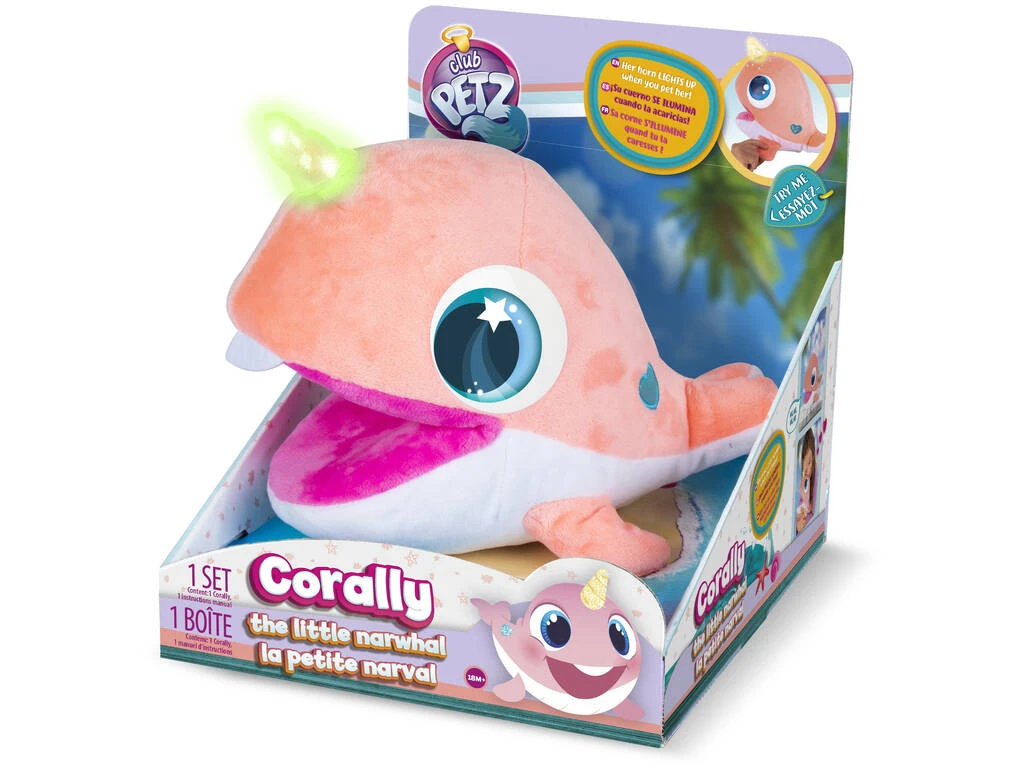 Incluye: 1 peluche infantil Corally El Pequeño Narval con luz y sonidos.