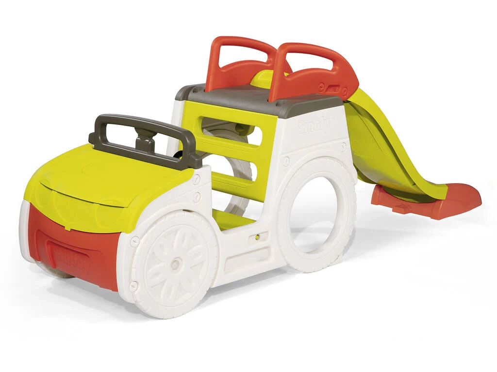 Disfruta junto a los peques de este sorprendente centro de actividades con forma de coche en el que podrán deslizarse por el tobogán, convertir el capó en un arenero, conducir el coche con el volante y el resto de accesorios que lo equipan, y muchas sorpresas más. El centro de actividades se ha fabricado en plástico muy resistente, con sistema Anti-UV para garantizar su calidad al ser usado al aire libre y con peldaños antideslizantes para una mayor seguridad. ¡El más estable, llamativo y práctico del momento! ¡Tienes diferentes modos de empleo y construcción!