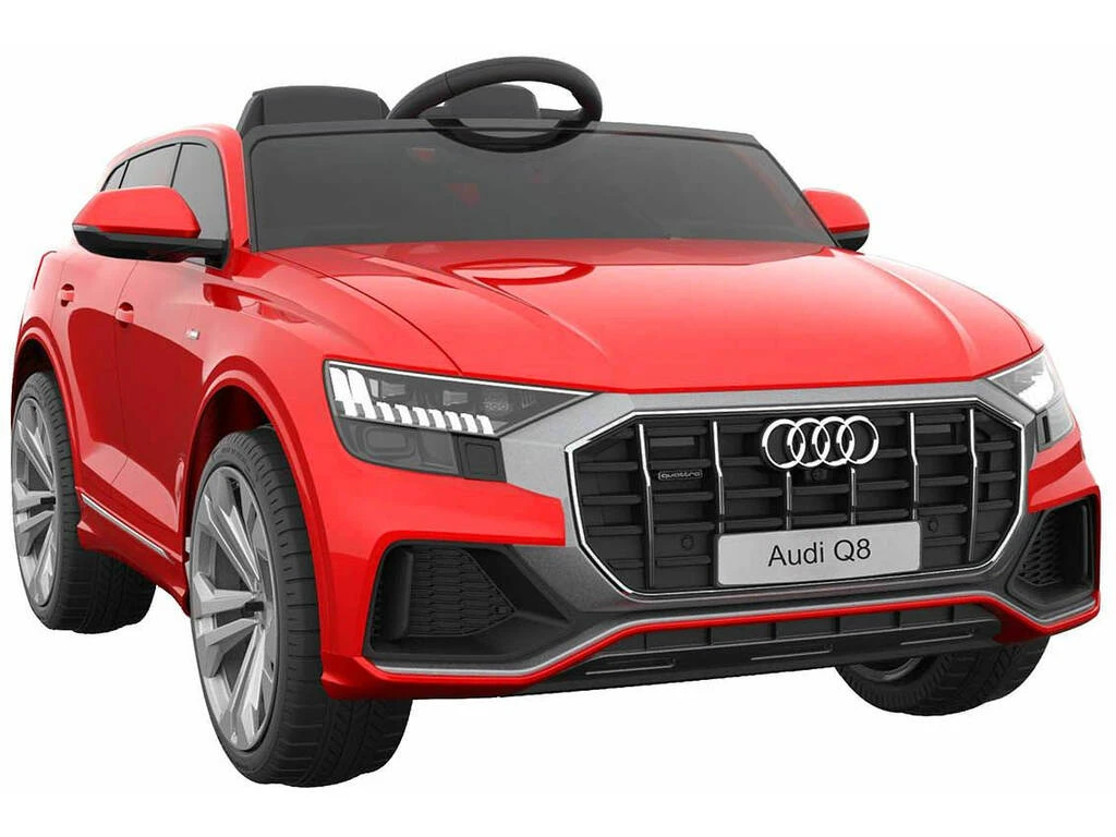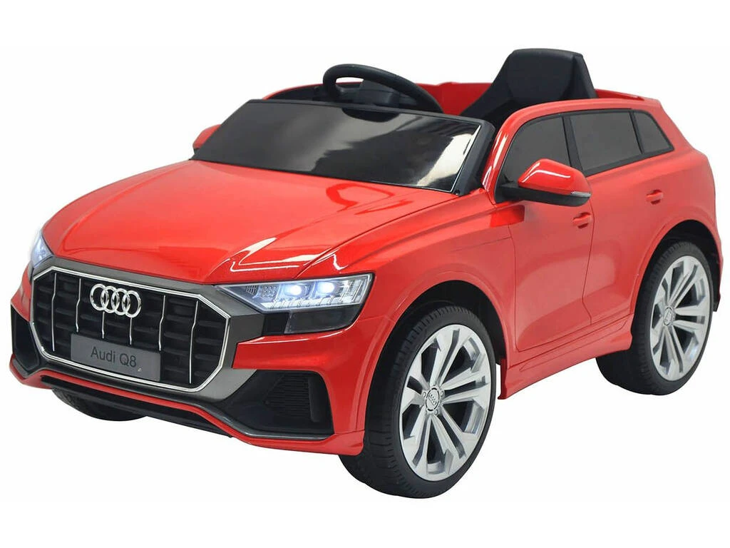 Incluye: 1 coche infantil Audi Q8 de color rojo con batería de 12v 4.5 Ah, ranura USB, TF y MP3, luces, control remoto con tecnología de frecuencia 2,4 Ghz y cargador para la batería.