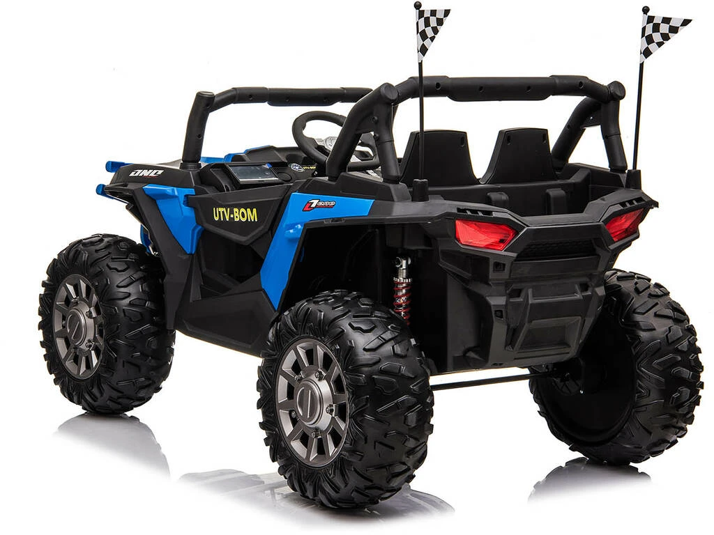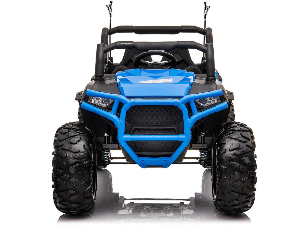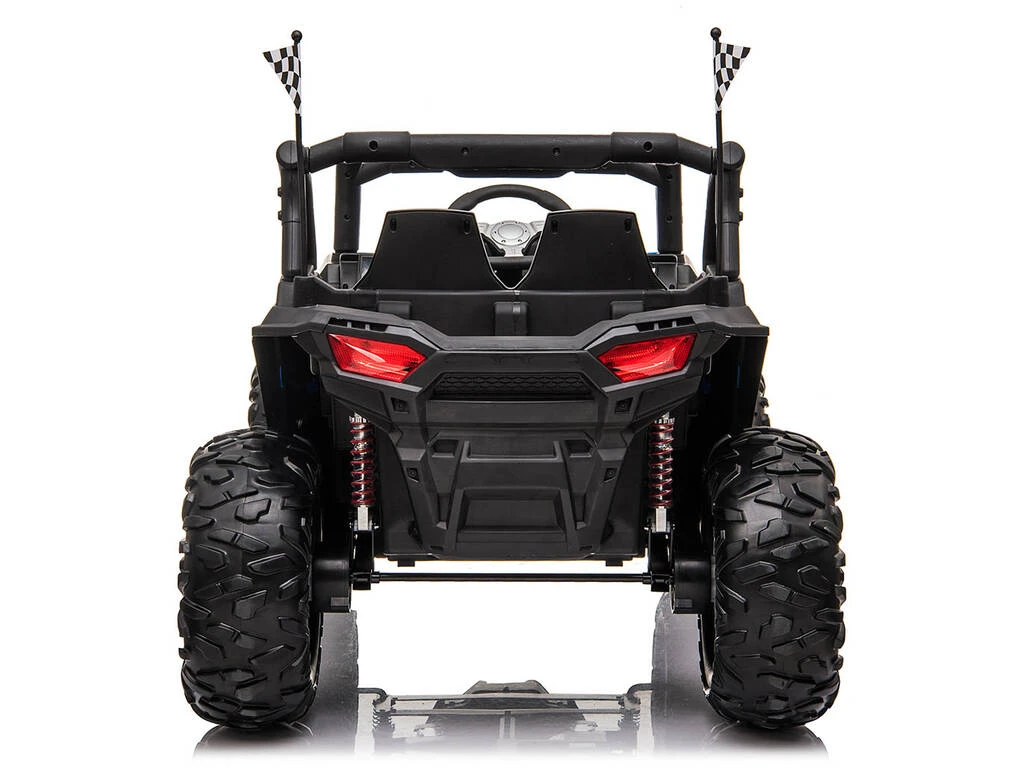Hazte con este genial vehículo infantil con función control remoto, un coche de gran tamaño para grandes aventuras. Este todo terreno se ha fabricado en materiales de gran calidad para un disfrute sin límites, con ruedas de gran tamaño de plástico con franja especial para mayor adherencia, puertas que se abren y cierran, luces y sonidos. Además, el vehículo incluye indicador de carga, ajuste de volumen y MP3, 2 velocidades (alta y baja velocidad), Bluetooth, USB, tarjeta TF y muchas más ventajas. ¡Diversión garantizada en tus nuevas aventuras sobre ruedas!