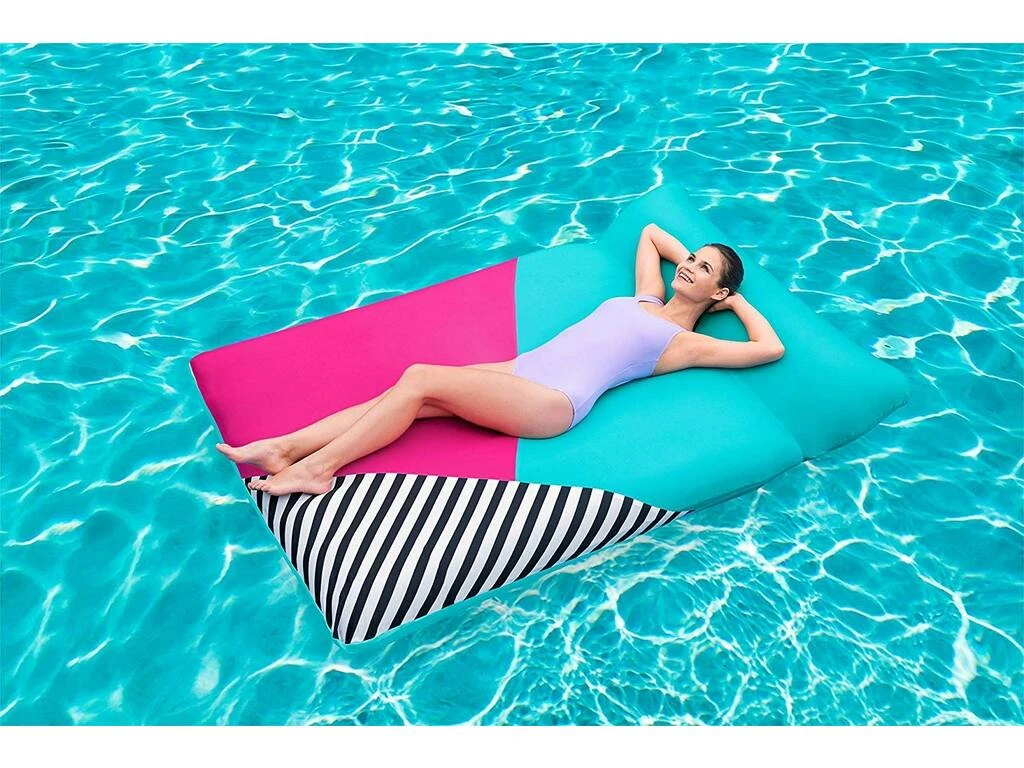 Sorprende a todos junto a tu nueva colchoneta hinchable de gran tamaño, que incluye una cubierta de tela que se quita y se pone con facilidad, que te aportará una mayor comodidad y le dará un toque mucho más estiloso a tu día en la playa o en la piscina. La cubierta tiene cierre fácil, es afelpada y está protegida contra los daños causados por los rayos del Sol. ¡con válvula de hinchado y deshinchado fácil para ahorrar tiempo y esfuerzo!