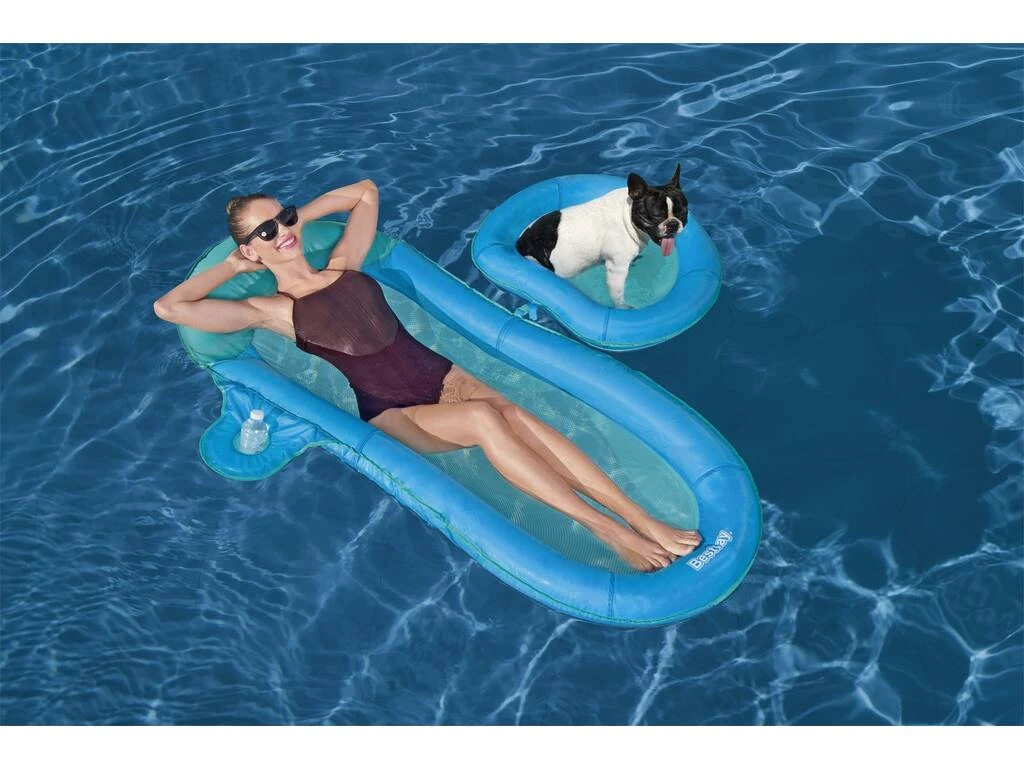 Junto a la colchoneta se incluye una mini colchoneta para pequeñas mascotas, que también podrás utilizar a modo de área de almacenaje para refrescos, cremas y más. Se hincha en pocos segundos y tiene un malla con sistema ComfortCool sobre la que tumbarse y disfrutar de un relajante baño en la piscina. ¡El futuro de los hinchables ha llegado y no lo puedes dejar pasar!
