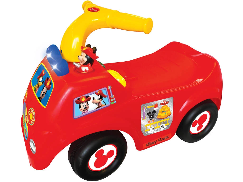 Deslízate junto a Mickey, a la vez que pulsas los botones para escuchar los sonidos y luces más realistas y divertidas que se encuentran en su simpático cuadro de mandos. ¡¡¡Te hará sentir como un verdadero bombero!!!