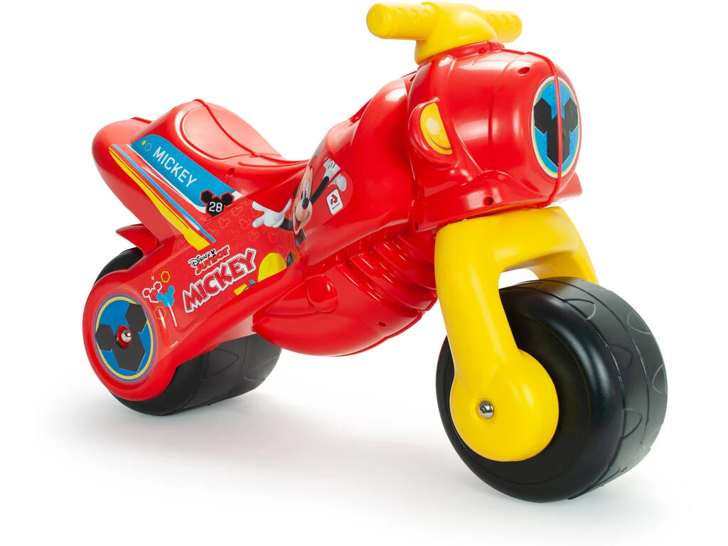 Ha llegado la hora de desplazarte junto al gran Mickey Mouse. Sus grandes y anchas ruedas de plástico harán posible tener una mayor estabilidad para evitar caidas y además tendrás que moverte con tus pies por lo que te ayudará a seguir con el desarrollo de tus habilidades motrices básicas mientras lo haces jugando.