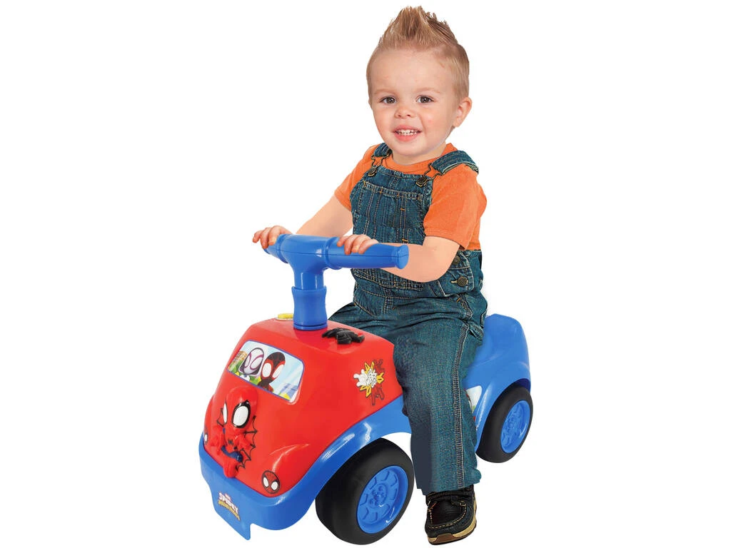 ¡Monta en el nuevo y divertido vehículo de tu superhéroe preferido! ¡Consigue este genial Correpasillos Spiderman Spidey con Luz y sonidos de Kiddieland!