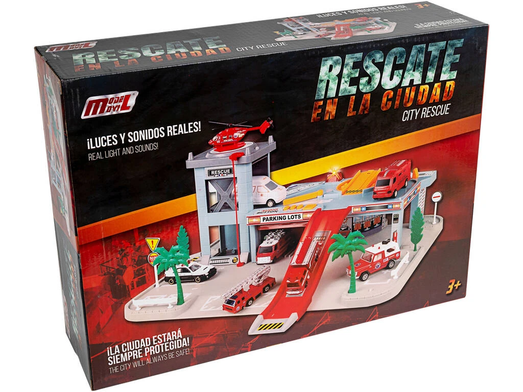 ¡ Fuego!. Con esta fantástica Estación de Emergencias estarás listo para salir a apagar un incendio en cualquier momento o acudir a una emergencia. Rescate en la Ciudad es un escenario ideal para pasar horas jugando imaginando miles de historias y que el héroe seas tú.