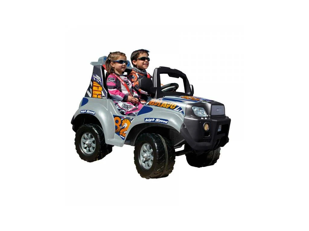 EL acelerador y el freno son eléctricos, con faros que imitan a los de xenón, con luz. El todoterreno también incluye luces y sonido en el volante, y radio FM y cinturón de seguridad ( No protegen)