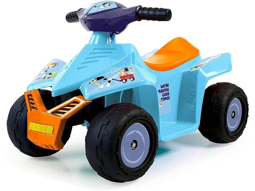 Consigue este nuevo y alucinante vehículo infantil, un quad de la mejor calidad, con diseño especial de la serie animada del momento, colores de lo más llamativos y diseño estable y seguro para disfrutar de la forma más genial. Sorprende a los pequeños fans de Bluey y disfruta en lugares especiales y seguros de este alucinante quad de Bluey. ¡El regalo ideal para los fans de todas las aventuras de Bluey!