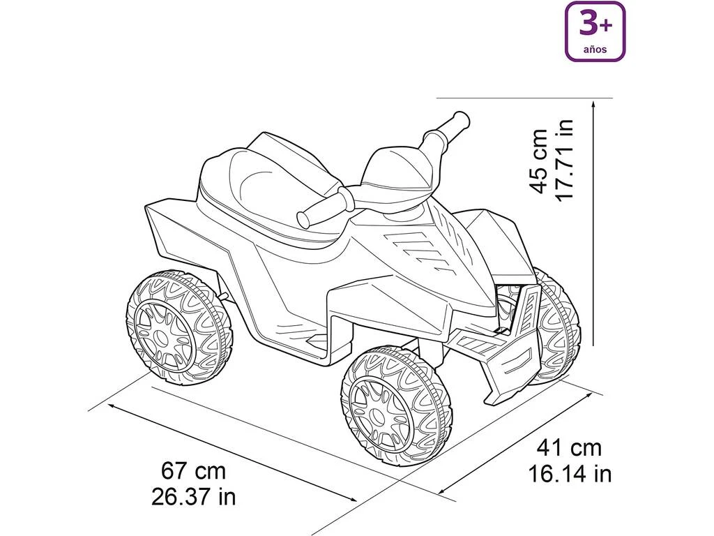 Medidas aproximadas del quad: 44 cm de alto, 42 cm de ancho y 69.5 cm de largo.