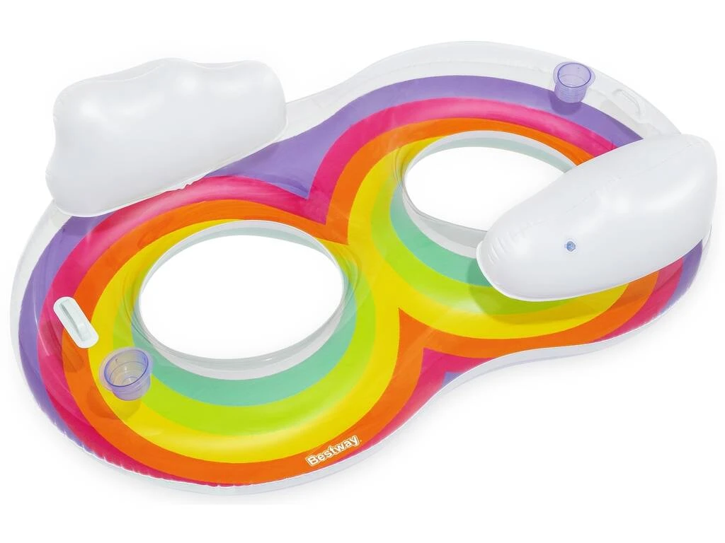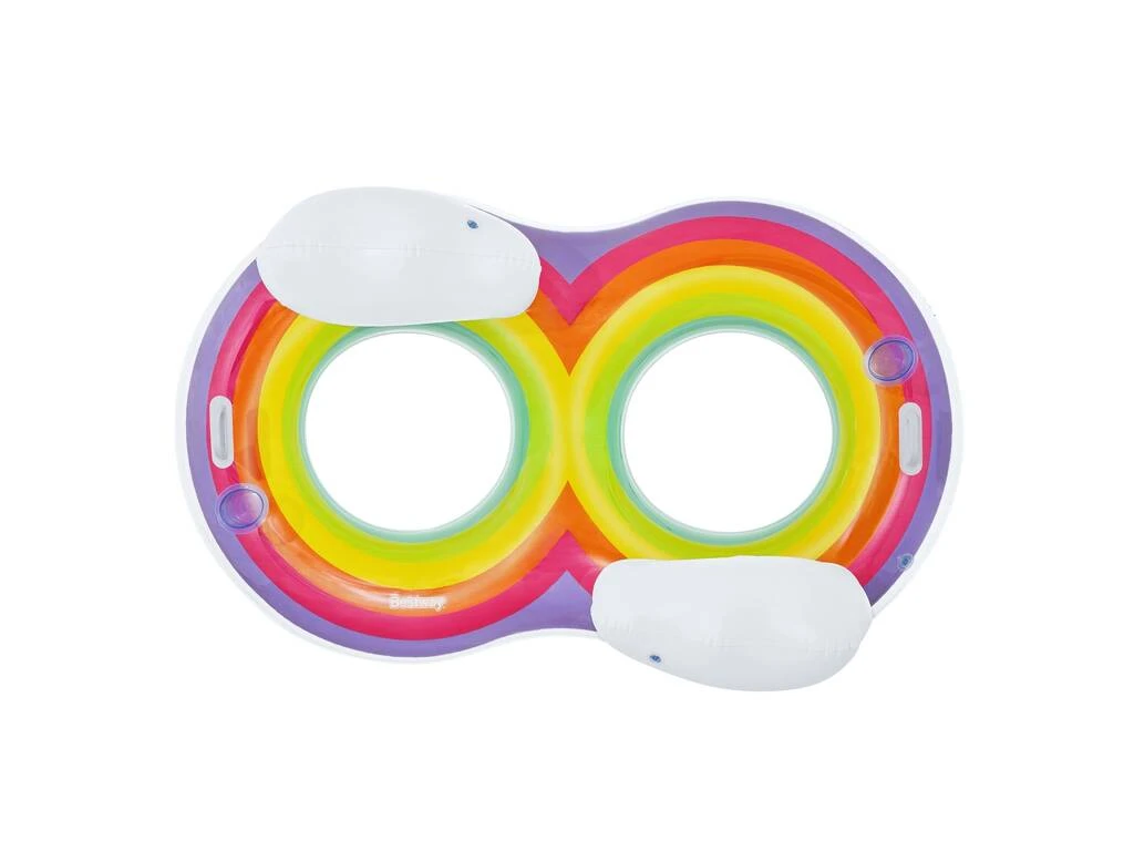 ¡Comienza el Verano con los chapuzones más coloridos y confortables! ¡Llévate a casa el nuevo Flotador Hinchable Rainbow Dreams Double Swim Tube 186×116 cm. de Bestway!