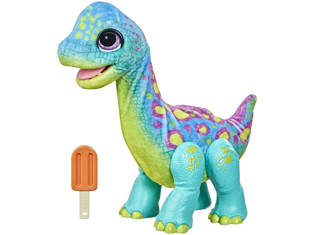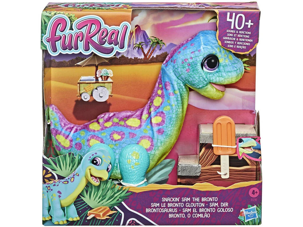 Incluye: 1 peluche FurReal Sam El Bronto Goloso y 1 helado para el dinosaurio.