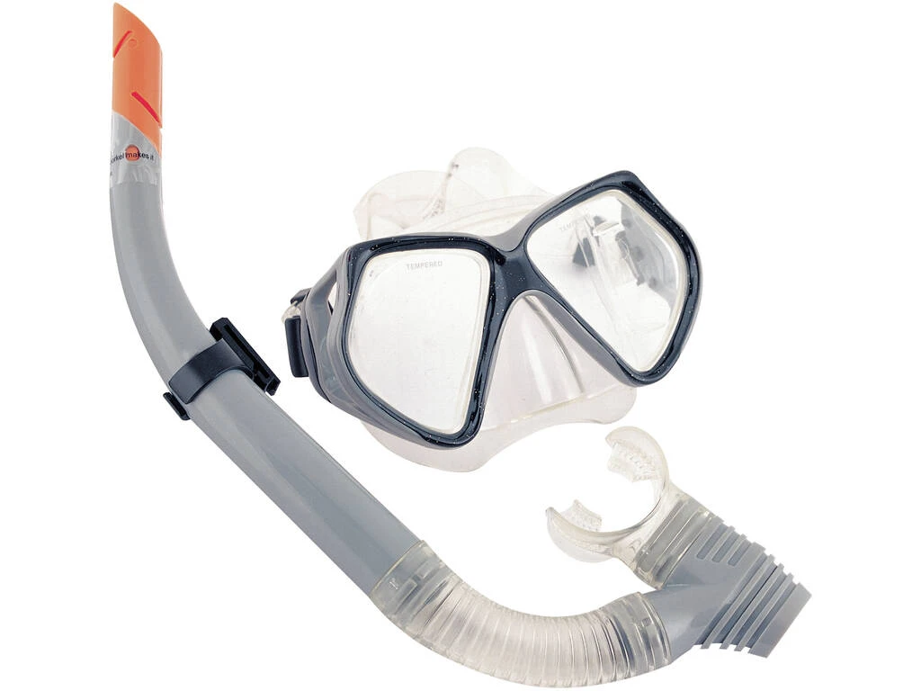 Máscara de buceo de 2 cristales templados y tubo flexible.