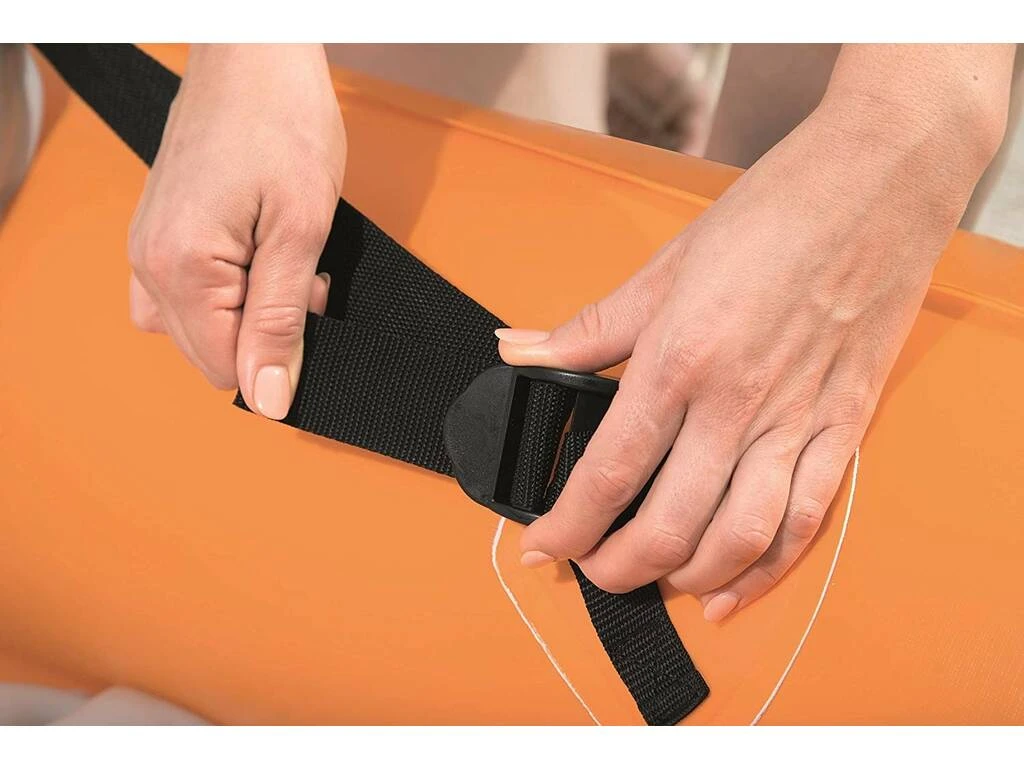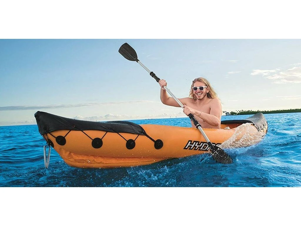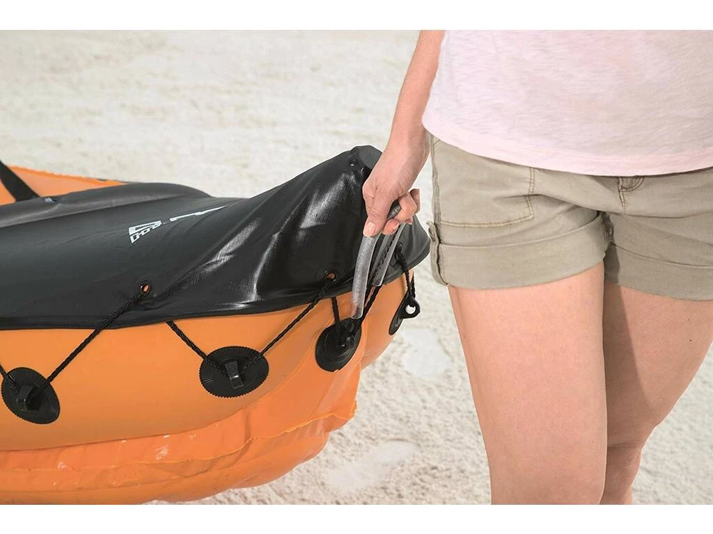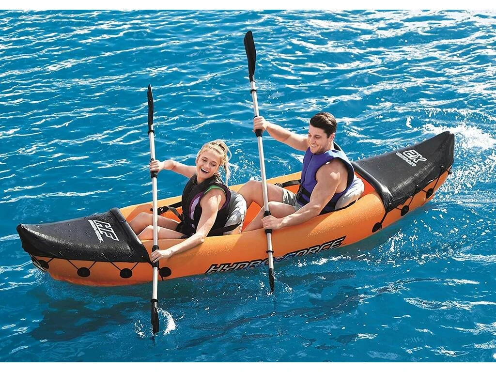 Diviértete y a la vez que practicas deporte en el agua con este Kayak hinchable Lite-Rapid X2 de color naranja de la marca Bestway. Su diseño y su comodidad te harán disfrutar del agua como nunca.