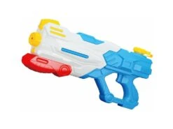 Incluye: 1 lanza agua Bunder de color azul claro, blanco, rojo y amarillo con gran depósito de agua y cargador rápido.