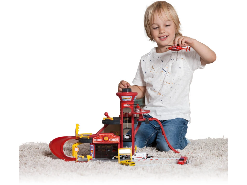 Consigue este impresionante set que incluye una completa estación de rescate con rampas, semáforo, ascensor, helipuerto y muchas zonas de juego más. Un lugar perfecto donde simular cualquier tipo de emergencia con respuesta inmediata y completar tus aventuras sobre ruedas en miniatura.