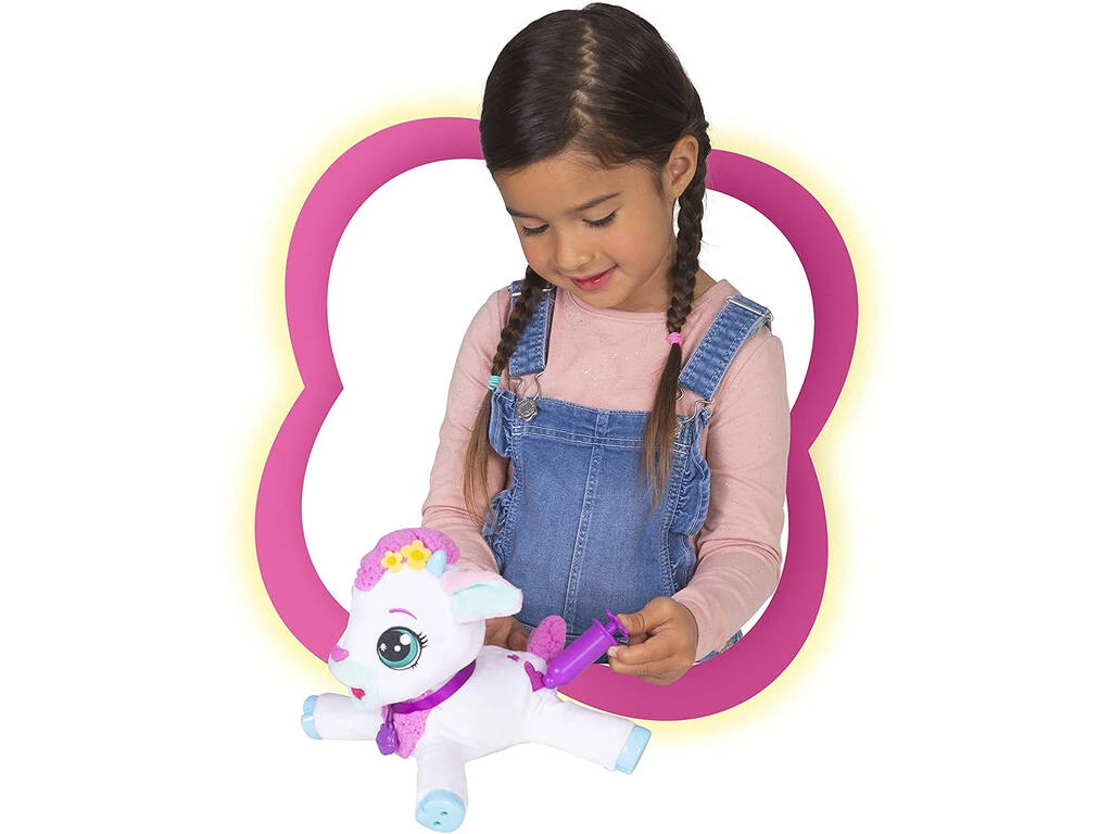 Descubre la nueva y preciosa cabrita bebé interactiva, capaz de emitir sonidos realistas y de aprender a ponerse de pie con tu ayuda. Alimenta a Milky para que coja fuerzas, que le ayuden a levantarse por primera vez. ¡Utiliza los accesorios incluidos para jugar junto a esta magnífica cabra interactiva!
