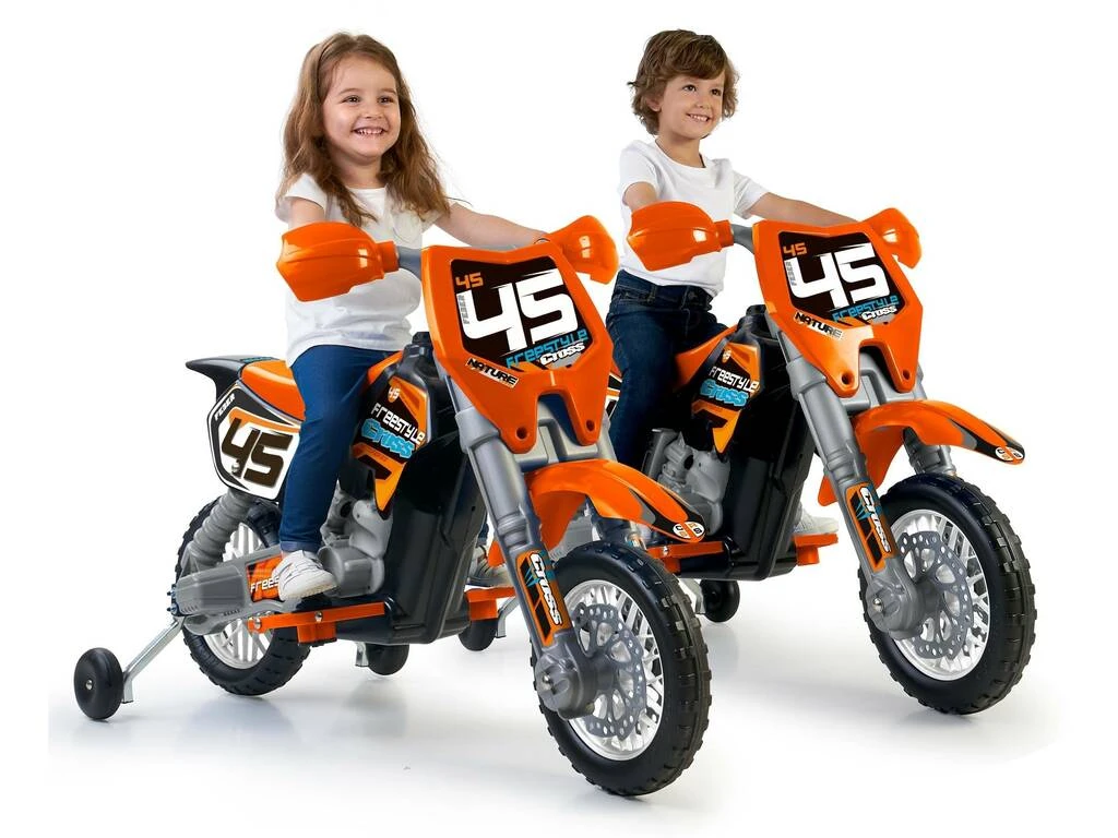 Disfruta de una nueva y muy lograda moto infantil con función a batería, fabricada con materiales de la mejor calidad y pegatinas especiales de competición que motivan al juego. Sorprende a los peques más aventureros con este vehículo creado especialmente para ellos.