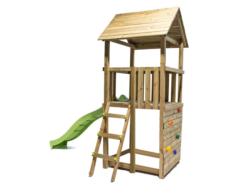 Consigue esta nueva versión del popular parque infantil Canigo, una torre de lo más completa, junto a la que ahora se incluye un divertido columpio infantil individual. Un parque de juegos fabricado en madera de calidad, ideal para colocar en el jardín de casa.