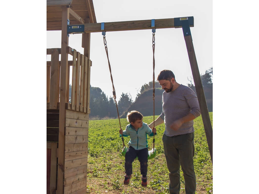 Completa el jardín de casa de una forma rápida y con un resultado final impresionante, el Kiosk XL es un parque infantil de madera muy popular, y no es casualidad, pues sus opciones de juego son innumerables. Además, ahora se incluye un columpio individual, donde los peques pueden columpiarse sin límite. ¡Con acabados muy conseguidos y la estabilidad que buscas para la seguridad de los peques!