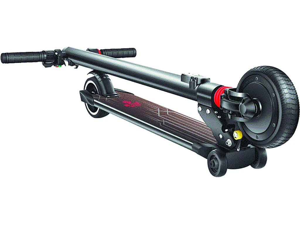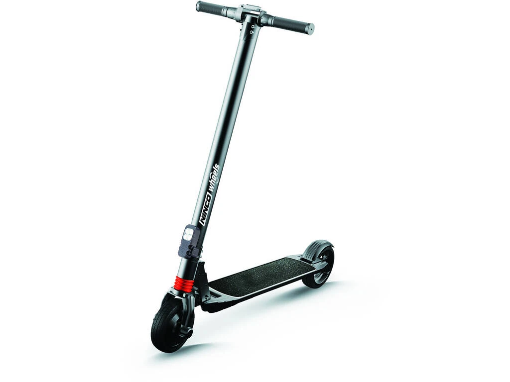Fabricado con materiales de alta calidad como es el aluminio, y siendo de color negro con detalles en rojo, este patinete es muy ligero llegando a pesar solo 9 kilos.
