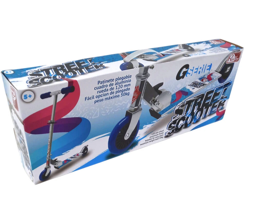 Incluye: 1 Patinete G Series de color azul y plateado con altura de manillar ajustable, sistema de plegado fácil, cuadro de aluminio, base antideslizante, empuñaduras verdes acolchadas, freno de pie en rueda trasera y ruedas silenciosas.