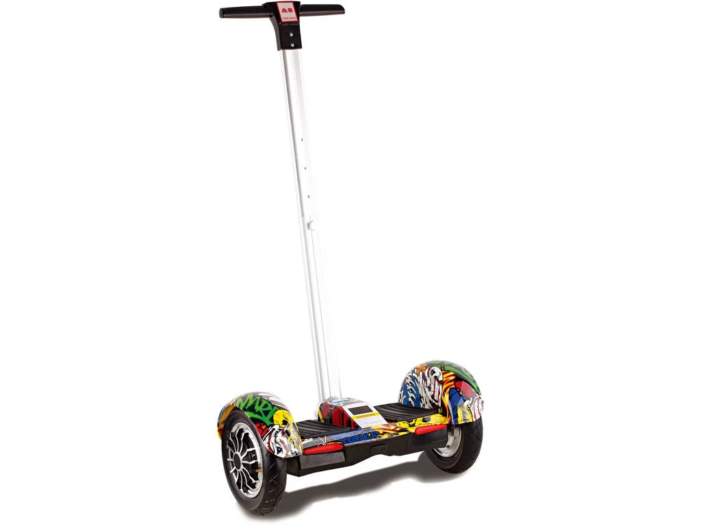 El scooter con manillar cuenta con varias novedades que te ayudarán a disfrutar mucho más de tu monociclo estilo segway. Una barra estabilizadora regulable en altura con cinco posiciones para adaptarlo a las necesidades del usuario fácilmente. Cuenta con una potente batería de litio que le aporta una autonomía de 15 – 20 Km (la distancia puede variar en función del terreno (si es llano o con cuestas), el peso del usuario y la velocidad de uso, el dato es solo orientativo) y es capaz de alcanzar una velocidad de hasta 15 Km/h, cuando se supera esta velocidad el monociclo emite un sonido de alarma para alertar al usuario.