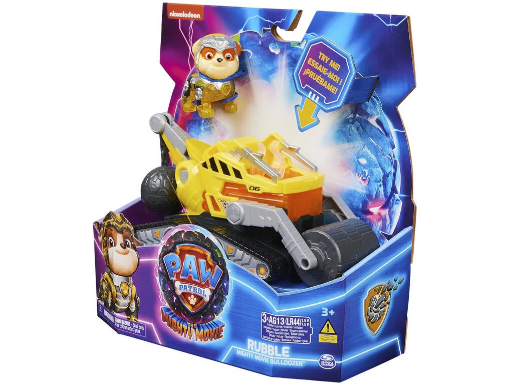 ¡Conoce a uno de los miembros del equipo de rescate! Gracias a este set de la Patrulla Canina Mighty Movie Vehículo Rubble de Spin Master 6067511.