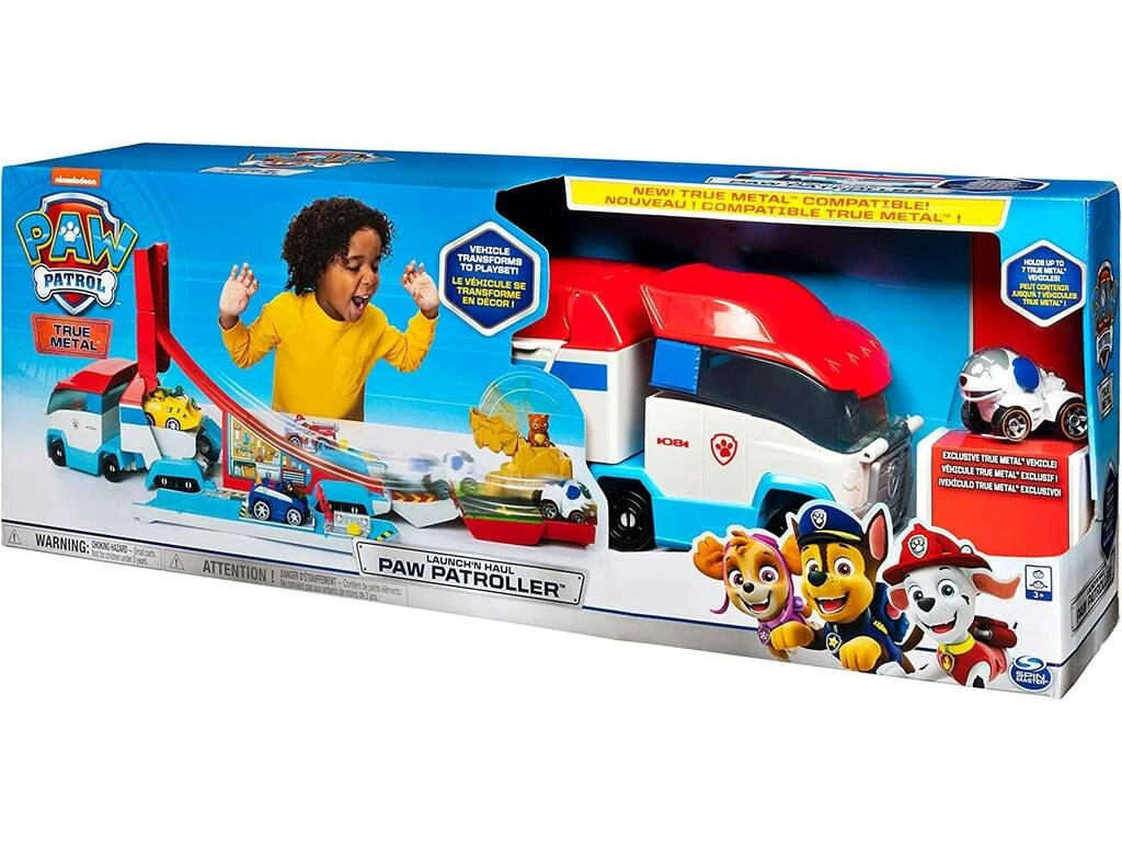 ¡Prepárate para una nueva aventura llena de acción y emoción! ¡Gracias a este completo Patrulla Canina True Metal Vehículo Launch & Hauler de Spin Master!