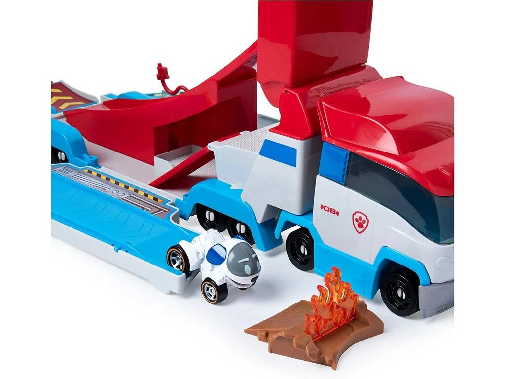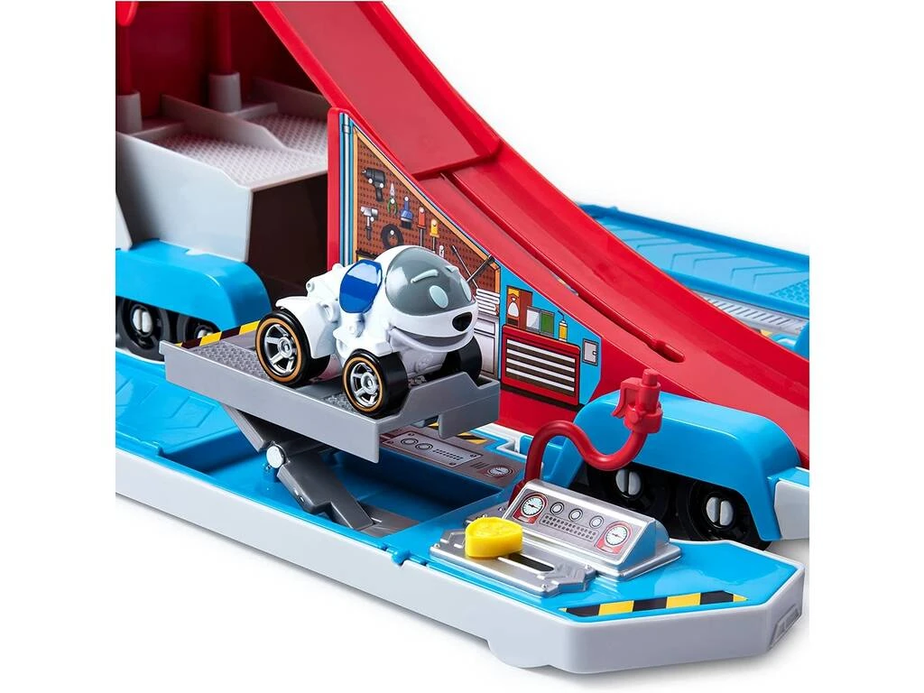 No dejes escapar este nuevo vehículo de la Patrulla Canina y revive alguno de los momentos más inolvidables de la serie animada. Ayuda al bueno de Robo Dog a preparar el camión, al abrirlo descubrirás un gran número de espacios donde jugar junto a todos tus vehículos de la Patrulla Canina.