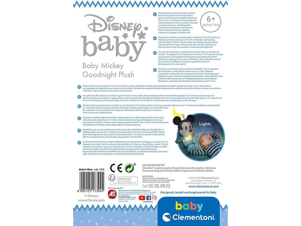 Estar acompañado del Peluche Baby Mickey Duerme Conmigo Clementoni 17394 es una sensación difícil de describir. ¡Disfruta por ti mismo de una fabulosa compañía!