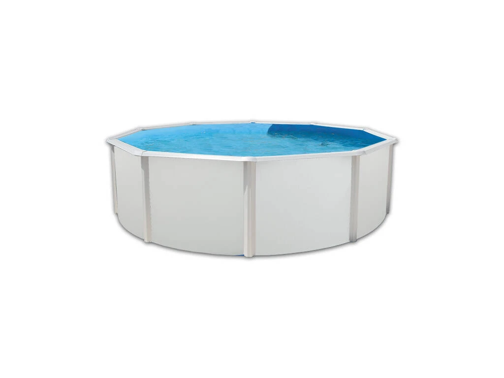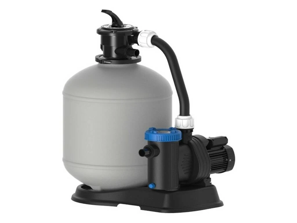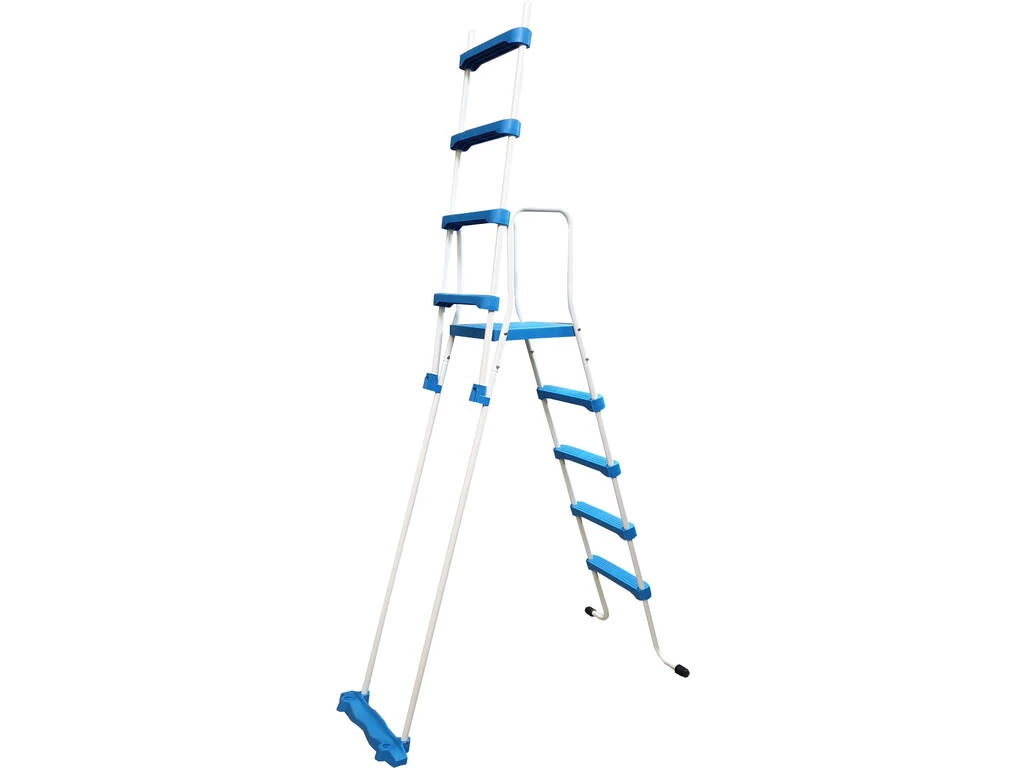 Esta piscina se complementa con una depuradora de arena que viene incluida de 8,5 m3/hora y una escalera de seguridad de 8 peldaños con plataforma.
