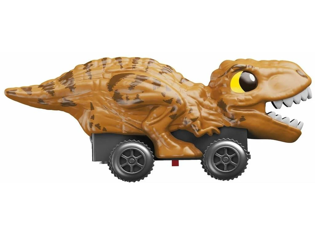 Incluye: 1 vehículo dinosaurio, 6 dinosaurios de goma, 11 señales y 1 circuito Parque Raptor para construir con puente luminoso, rampas, terrenos variados y muchas más sorpresas.