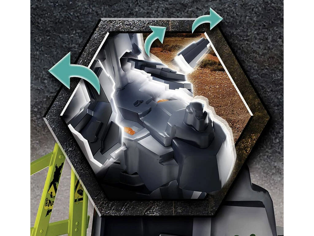 Pásalo en grande con una nueva aventura de otra era, disfruta junto a las figuras incluidas en este impresionante pack y crea momentos únicos en miniatura. Explora la montaña del dinosaurio, mueve sus rocas y déjate impresionar por la roca que tiene luz, sonido e incluso vibración.