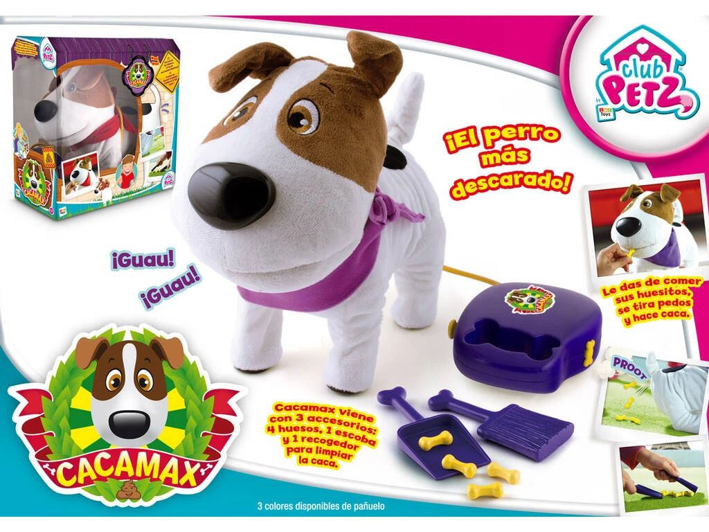 Con el botón joystick puedes hacer que Cacamax ande hacía adelante, ladre, se siente, se tire pedos y haga caca. ¡¡Pero no olvides que hay que recogerla!! Funciona con pilas. A partir de 3 años.