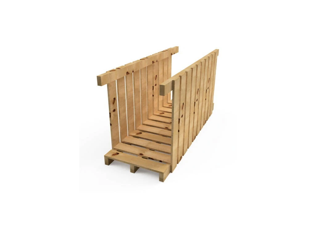 El pack incluye: 1 puente de madera Madison para unir dos parques infantiles de Masgames y los herrajes.