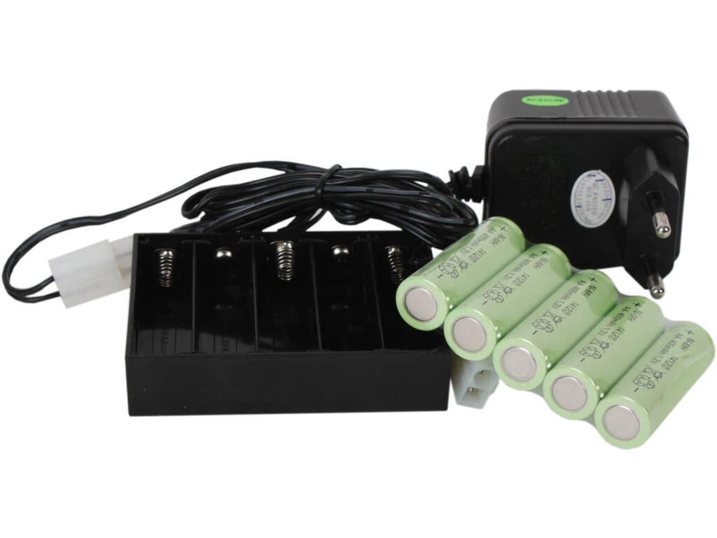 -Requiere 5 pilas AA(incluidas, recargables, con cargador) y 1 pila 9.V (No incluidas)para el mando.