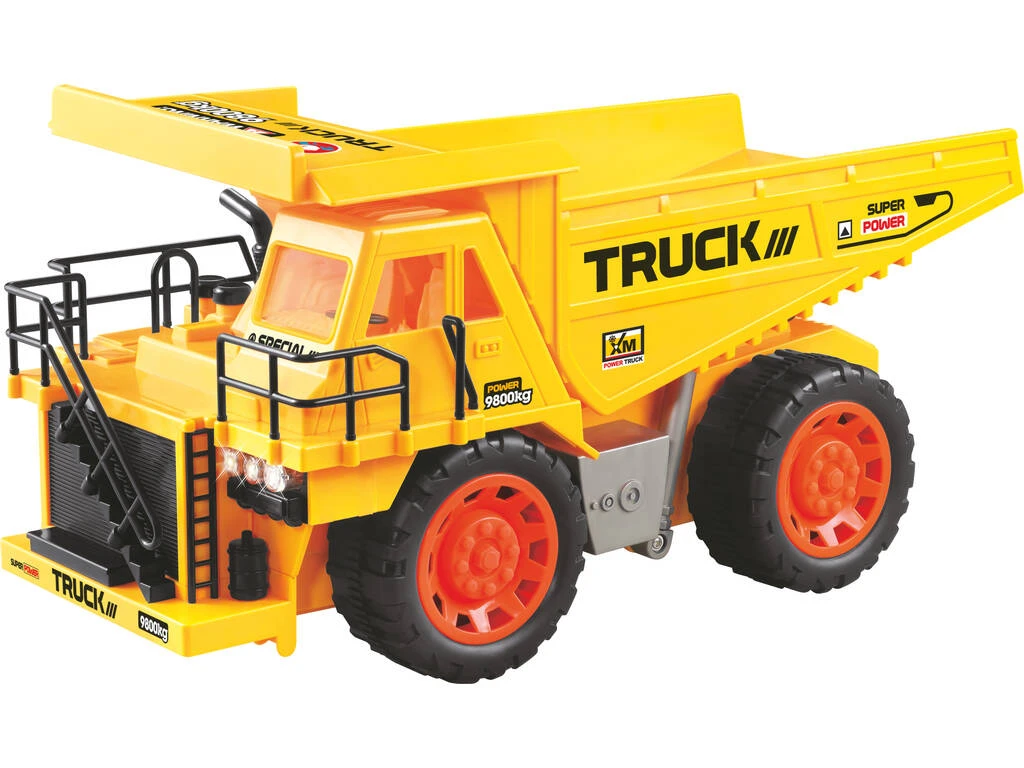 Maneja el camión volquete teledirigido por la zona de obras para asegurarte de que las cargas lleguen rápido y bien.