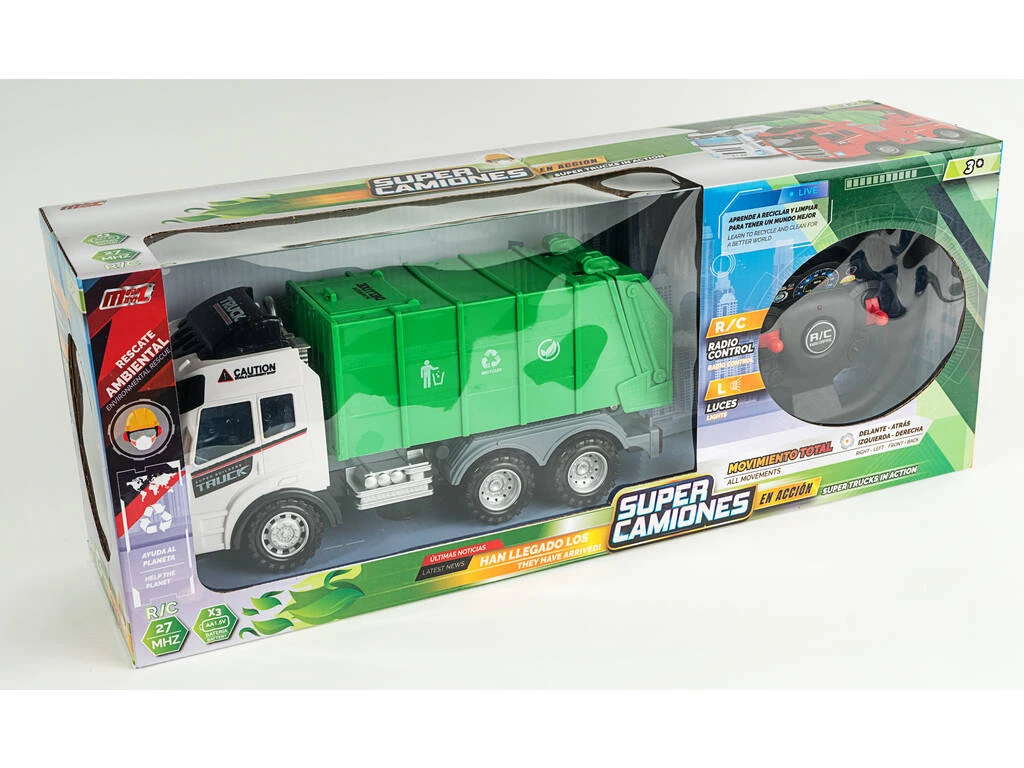 Incluye: 1 camión de la basura RC con luces y control remoto para el camión.