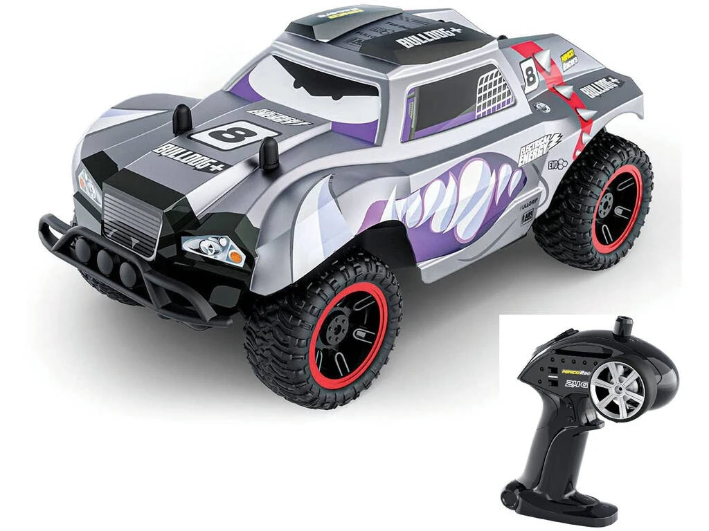Elaborado a través de plástico resistente, duradero y ligero. Tiene buena funcionalidad y buena movilidad ya que podrás conducir en cualquier dirección, un estilo imitando a un bulldog poderoso y con el que podrás alcanzar una alta velocidad. ¿Serás capaz de controlarlo y manejarlo con el mando?.