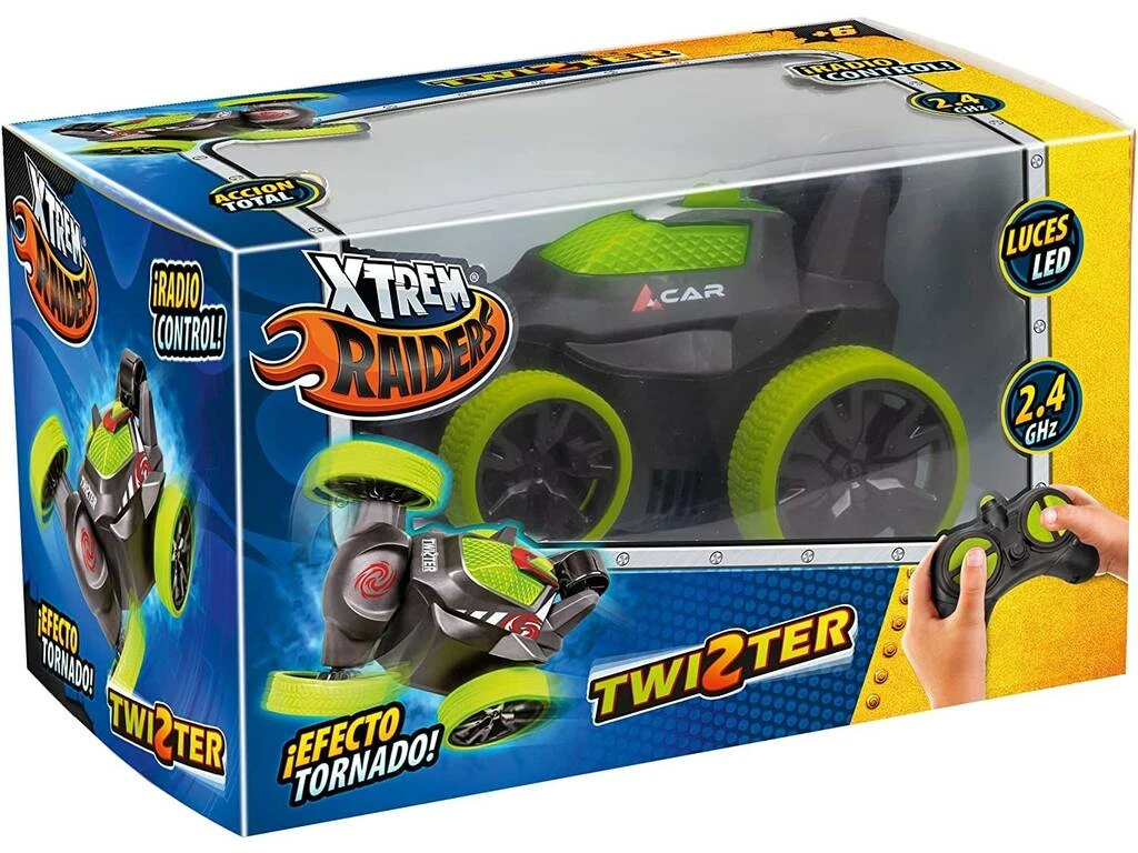 ¡Rápido e imprevisible como un tornado desbocado! ¡Así es el nuevo Xtrem Raiders Vehículo Radio Control Twister de World Brands!